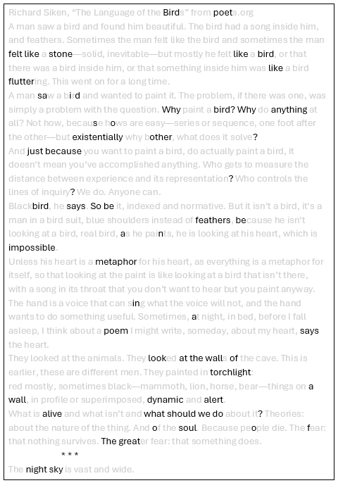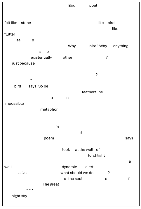 Bird poetJanie BravermanApr 24, 20251332ShareFeather thought by some to be from the last known Bird PoetSource text for Bird poet:Thanks for reading Under Construction where the door is always open.Subscribe