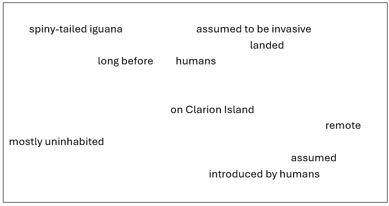 In June, I wrote about sea-faring iguanas in Carried Home, on the imagination of iguanas.